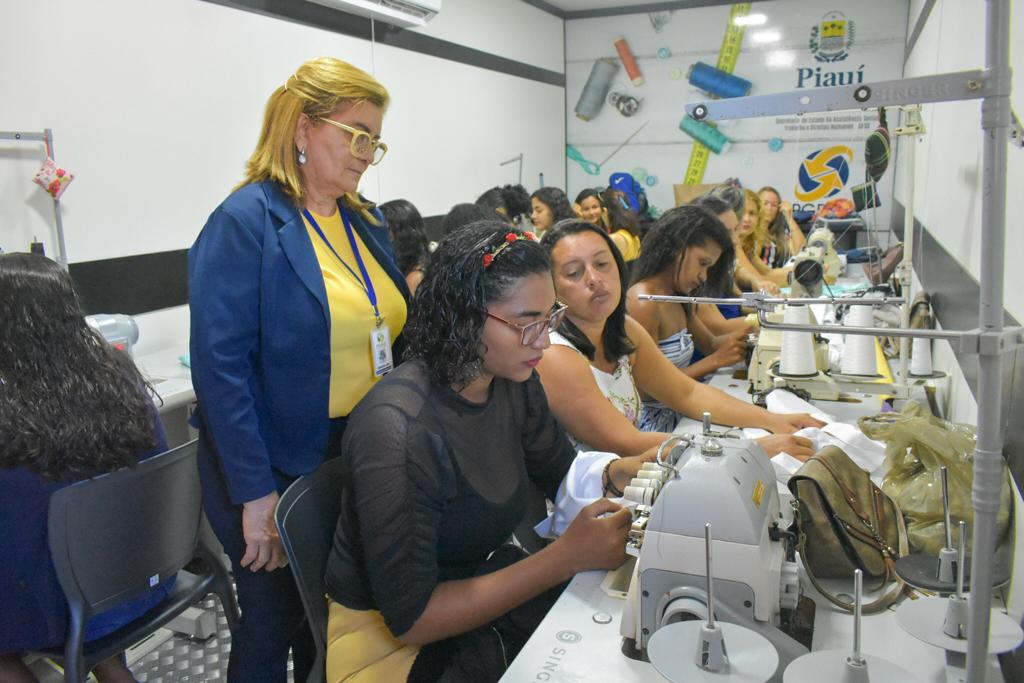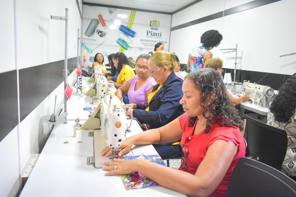 A Unidade Móvel mede 13 metros de comprimento, sendo 6,5 m para o Curso de Cabeleireiro e 6,5 m para o Curso de Corte e Costura. A estrutura possui 08 máquinas industriais, mesa para corte de tecidos, ar condicionado.